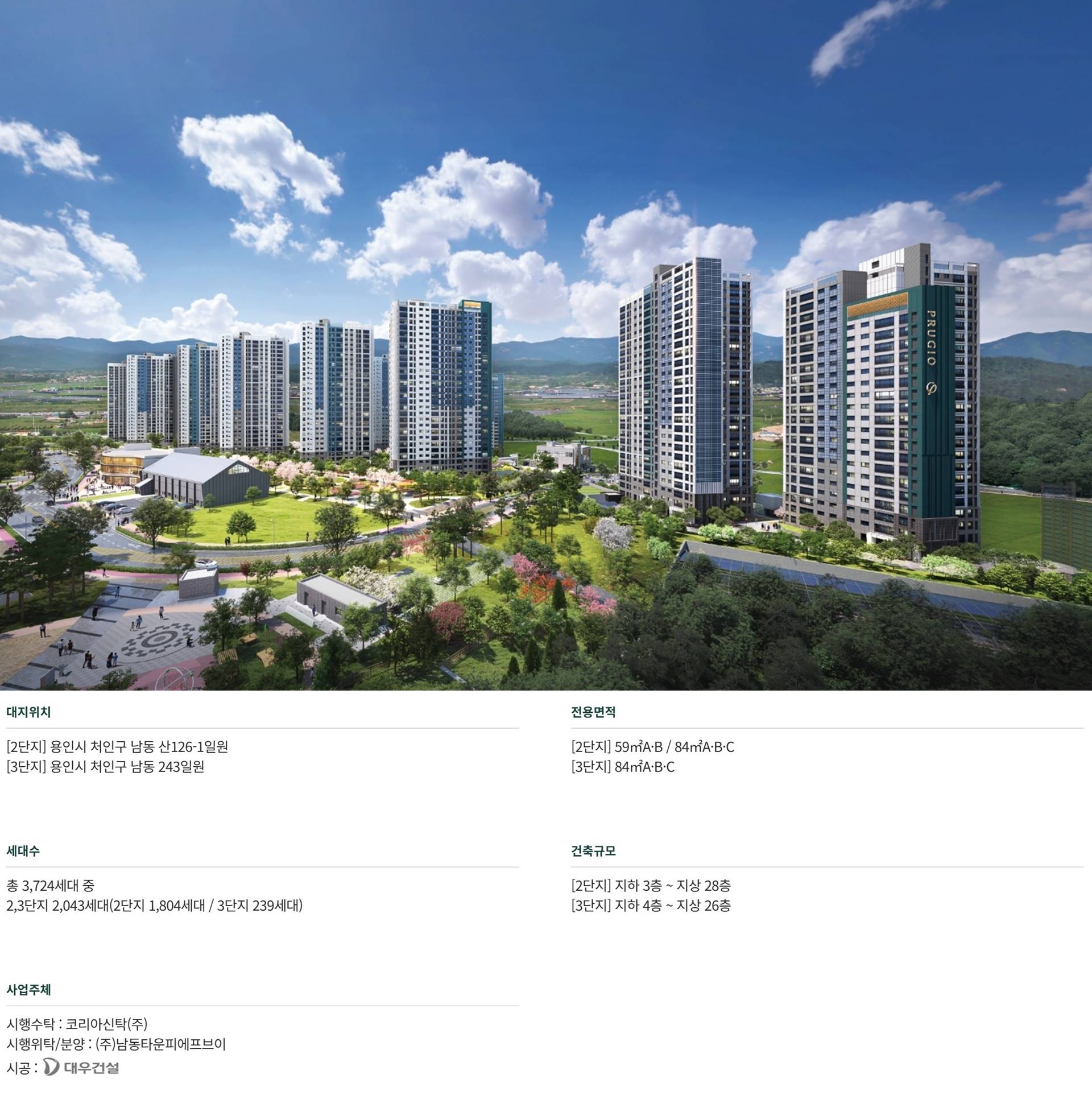 총 1,940세대의 압도적인 규모와 지상 최고 29층 높이로 용인 남사지구의 주거 중심지로 자리매김합니다.